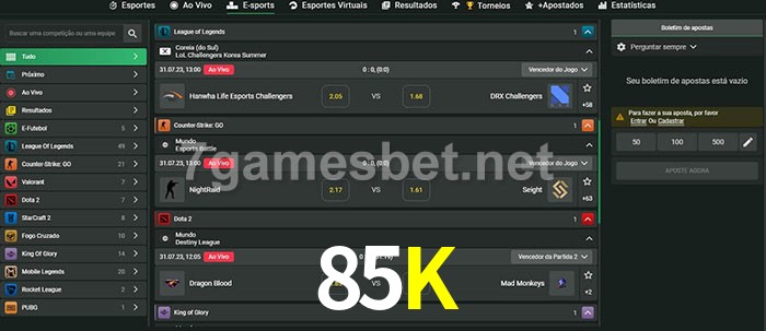A aposta 85K oferece aos jogadores a experiência mais conveniente de apostas em eSports!